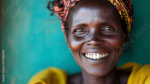 A photo of a person with a genuine, wide smile, eyes sparkling with joy