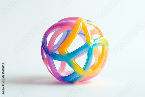 A photorealistic closeup of a toy antigravity ball, realistic plastic, clean white background, soft lighting
