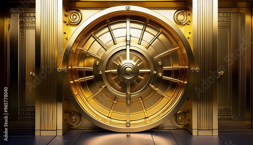 A photorealistic gold vault door slightly ajar