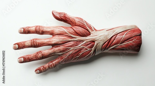A photorealistic human hand, palm facing up, showing skin texture, veins, and fingernails, isolated on a white backdrop
