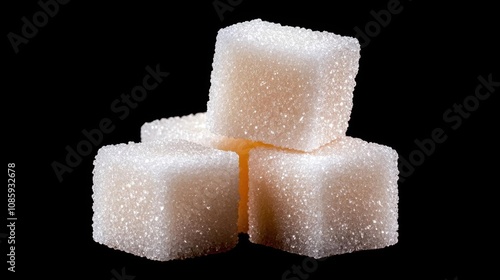 A photostock of a set of stacked white sugar cubes arranged in a pile on isolated on transparent PNG background, High Quality.