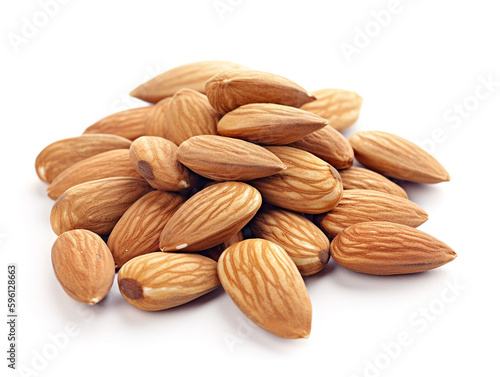 A pile of almonds on a white background