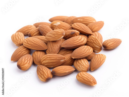 A pile of almonds on a white background