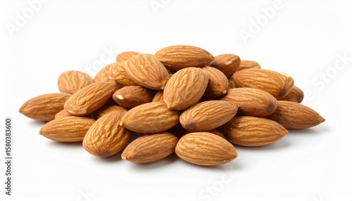 A pile of raw almonds displayed on a clean surface, showcasing their rough brown texture and natural ridged appearance