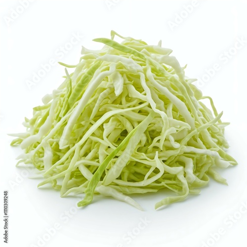 A pile of shredded cabbage on a white background.