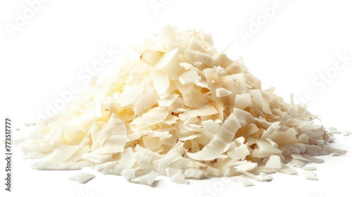A pile of shredded coconut on a table. Ideal for food and cooking concepts