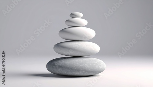 A pile of Zen stones on a white background is arranged in a balanced tower.