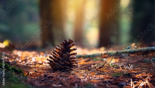 a pine cone resting on the forest floor