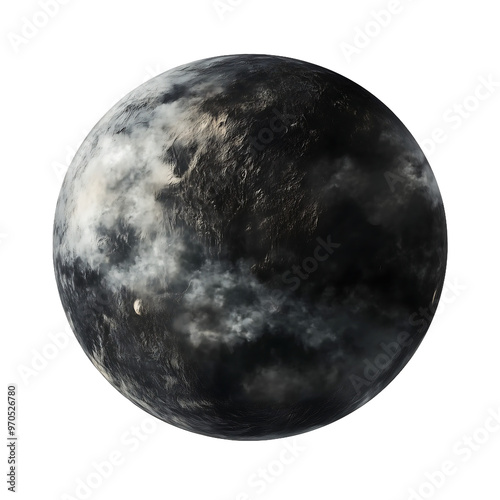 a planet with a dense, foggy atmosphere and shadowy landscapes, isolated on white background.