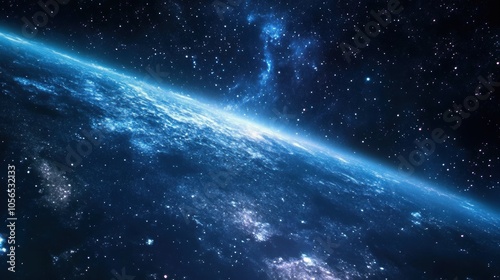 A planet's blue surface against a starry sky.