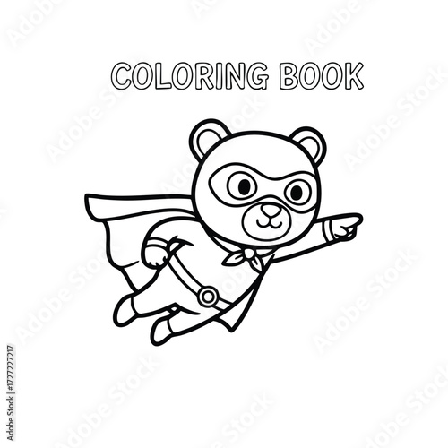 A playful superhero bear character in a coloring book style, ready to embark on an adventure with children.