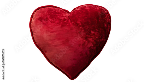 A plush red heart-shaped pillow isolated on a black background.