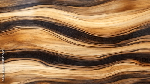 A polished wood surface in light and dark brown tones with intricate grain patterns