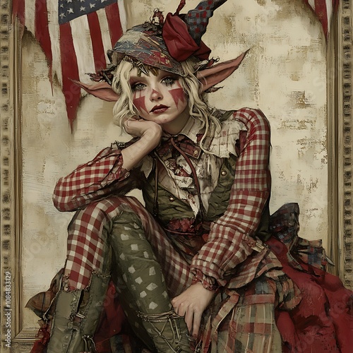A Portrait of a Sad Elf in Red and White Plaid Clothing