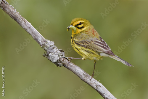 A Prairie Warbler (Dendroica discolor) perched on a branch at the Carden Alvar in Ontario, Canada.