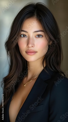 A professional headshot session with a clean, modern background, using soft lighting to capture a sleek and confident look Minimalist Soft Lighting Photography