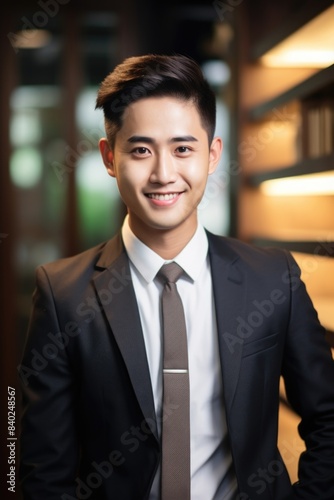 A professional man posing for a photo shoot, dressed in a suit and tie