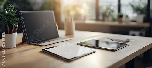 A professional workspace with a focus on a digital tablet