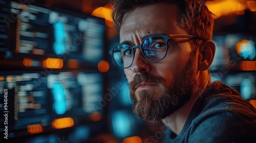 A programmer analyzing complex AI code on multiple screens