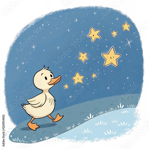 A Q version of a little duck curled up on a soft cloud illustration