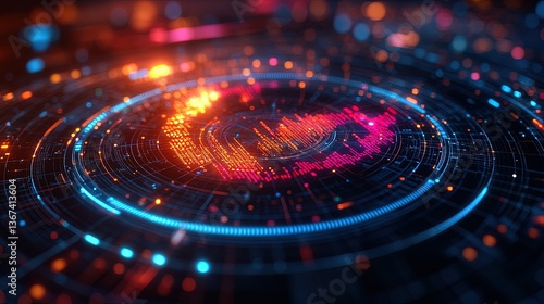 A radial chart with glowing, dynamic edges spinning slowly in a sci-fi environment