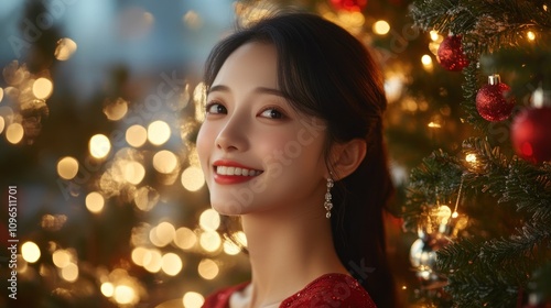 A Radiant Christmas Eve Portrait: A Young Woman's Festive Charm