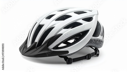A realistic bicycle helmet with aerodynamic vents, adjustable straps, and matte finish isolated on white background