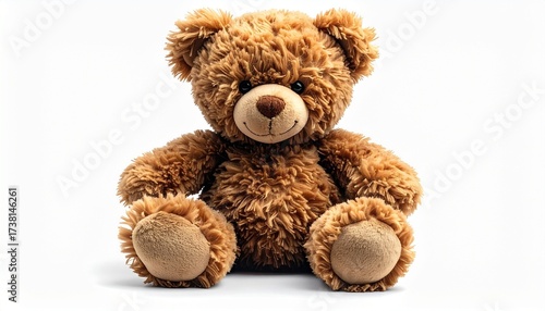 A realistic teddy bear plush toy with brown fur, stitched nose, and soft fabric detail isolated on white background