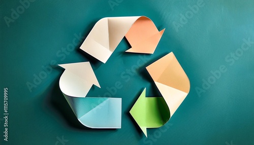 A recycling symbol made of paper arrows promotes awareness of sustainability practices