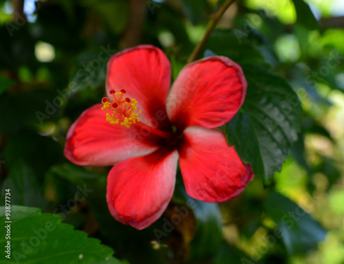 a red hibiscus flower