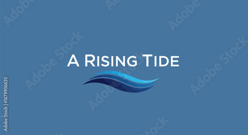 A Rising Tide text with blue wave graphic on a solid blue background.