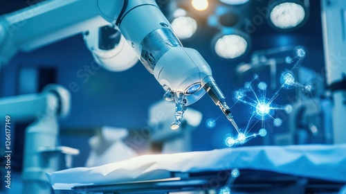 A robotic arm interacting with a surface, showcasing advanced technology in a medical setting.