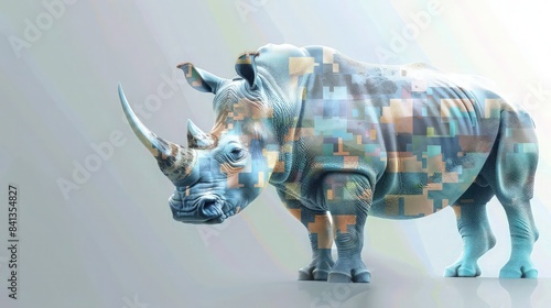 A robust rhino abstract wallpaper, with pastel greys and blues, abstractly portraying the power and solidity of the animal.