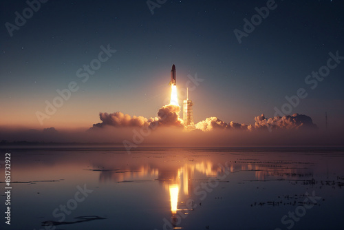 A rocket with a shuttle takes off from the cosmodrome