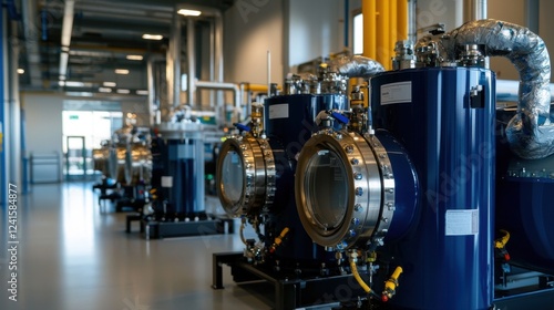 A row of blue tanks with clear lids