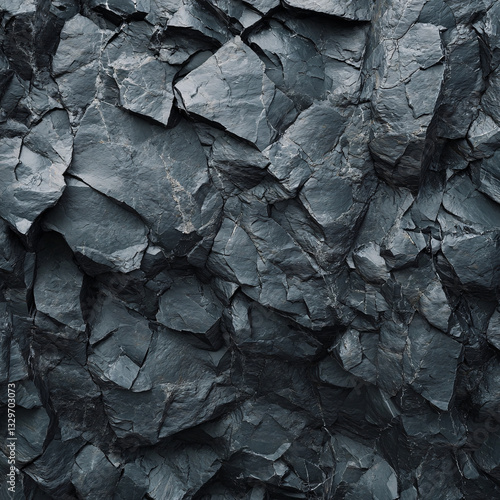 A rugged gray rock surface with sharp cracks and deep fissures showing a natural and organic stone texture shaped by erosion over time