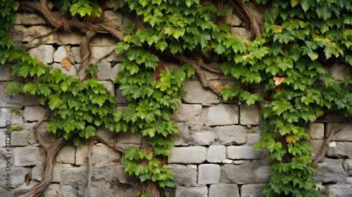 A rustic stone wall, enhanced by the elegant ivy that has claimed it as its canvas