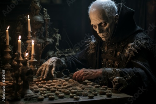 A ruthless and calculating necromancer, raising armies of the undead to do their bidding. - Generative AI