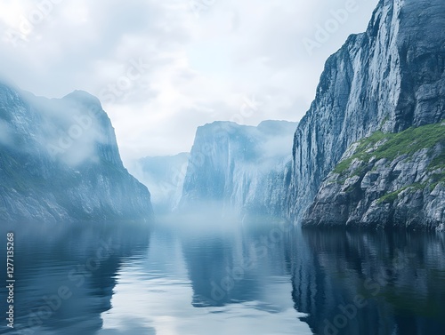 A Scandinavian fjord with rugged cliffs and calm mirror