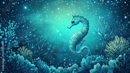 A Seahorse Swims Through Bioluminescent Coral Reef