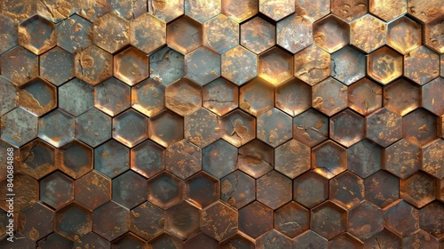 A seamless blend of honeycomb patterns in various shades of copper and gold gives the illusion of a continuously flowing metal surface