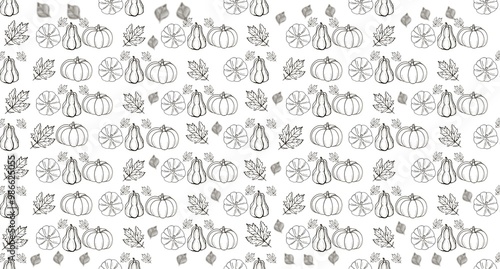 a seamless pattern of black and white pumpkins. Doodle seamless pattern pumpkins. Vegetables seamless pattern, isolated background