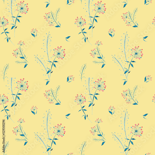 A seamless pattern of delicate herbs. Watercolor illustration.