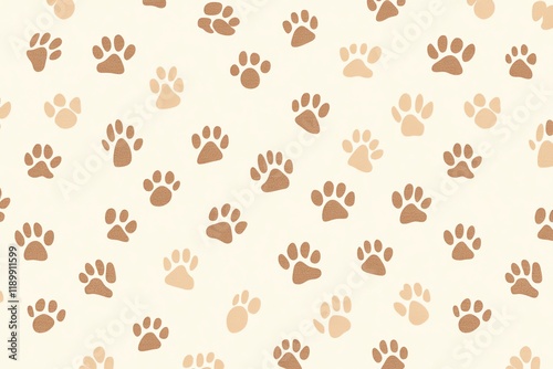 A seamless textile pattern featuring light brown paw prints scattered across a soft beige background, creating a subtle and elegant design perfect for animalthemed fabrics