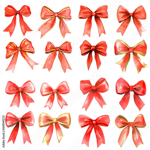 A selection of vivid ribbon bows designed for festive wrapping, enhancing the decorative spirit of celebrations.