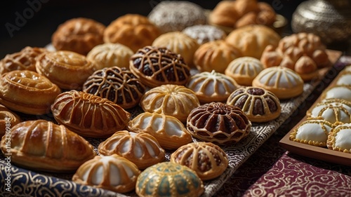 a selective focus shot captures the intricate detail of artisanal Arabic pastries Food and culture.