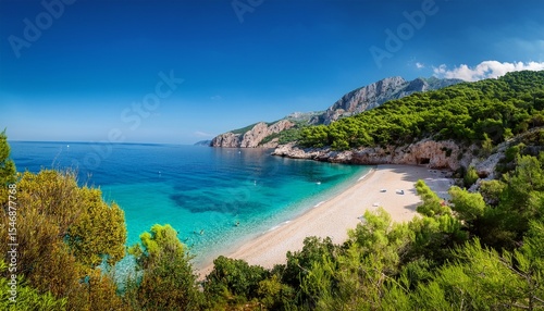 a serene beach scene with golden sandy shores and crystal clear turquoise waters in dhermi s picturesque bay surrounded by lush greenery and towering cliffs beautiful sandy beach beach landscape