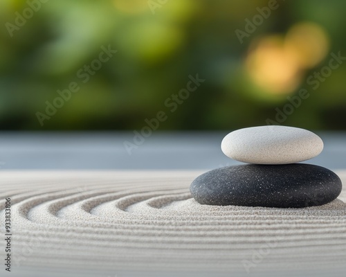 A serene composition of stacked stones on a softly raked sand surface, symbolizing balance and tranquility in nature.