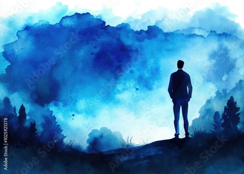 A serene deep blue watercolor background ideal for design and illustration, enhancing print and digital media projects with its calming and artistic appeal.