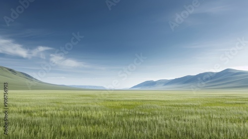 A serene landscape featuring lush green fields under a clear blue sky, perfect for nature and travel themes.